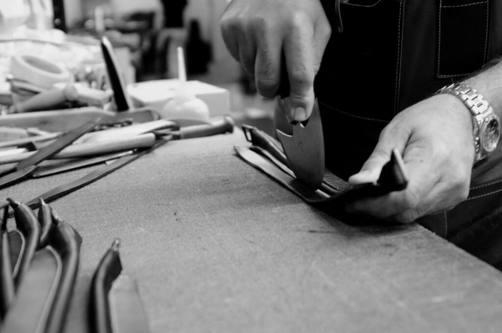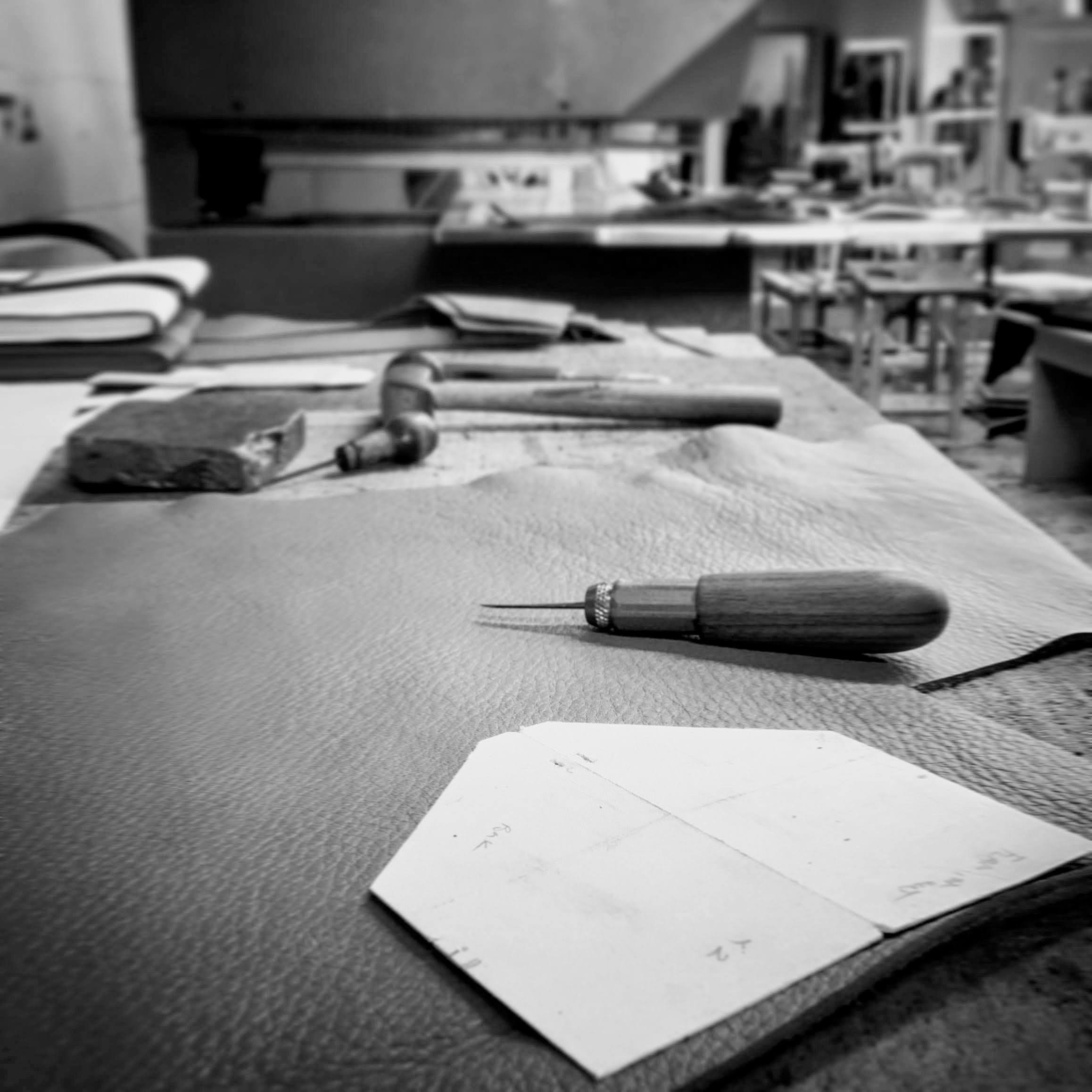The Workshop is the place where ideas are conceived, tools are picked up and pieces of leather are cut, split, skived and sewn together. Mass production is unheard of here. Most of the work here is done by hand. In the Workshop, some tools are still used that few people can identify these days (never mind use).