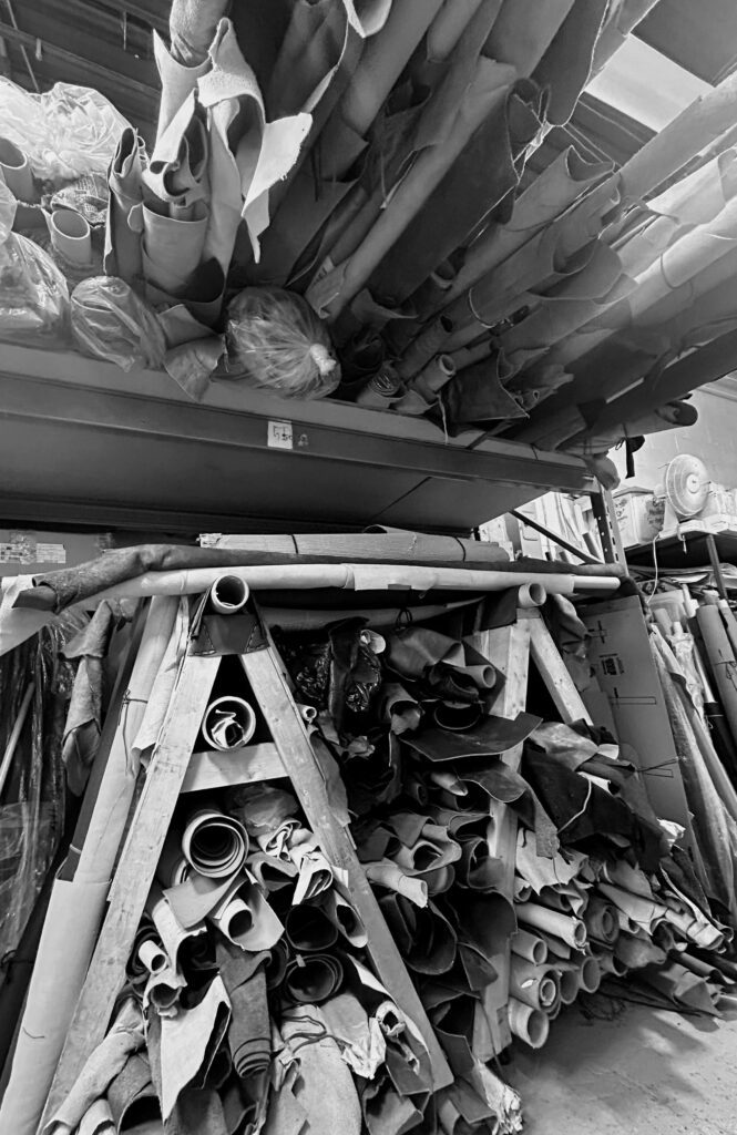 Hides of leather are delivered to the Workshop. They take up space in almost every corner. Looking through the bundles of leather is similar to flipping the pages of a story, telling the tale of Aquarian Leather and the projects we’ve taken on.